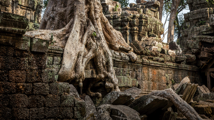 Ta Prohm rappelle immédiatement les images du blockbuster '’Lara Croft: Tomb Raider – Pilleur de Tombe'’ parce que c'est là que la vedette d'Angelina Jolie a été tournée. Avec des arbres gigantesques émanant des ruines, le temple a un certain air extrêmement mystérieux et doit absolument être exploré…